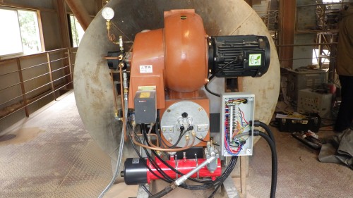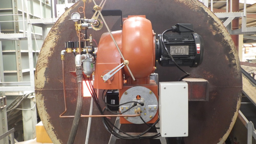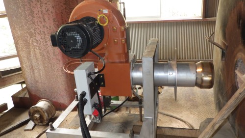 | 特徴 | ①ファン能力の高いブロアー仕様 ②特殊な燃焼筒を使用 ③フレームがとてもよく、綺麗な安定した製品が製造出来ております。 ④手動比例タイプは、オペレーター様のご希望で、今まで通り手動調量したいとの事でしたので、このタイプが実現できました。 ⑤ドラフトチューブは標準ですが、フレームロックを特殊仕様とし、火炎が未燃の燃料を巻き込む形出来ました。結果も同じく臭気無し・製品の色は正常です。 |