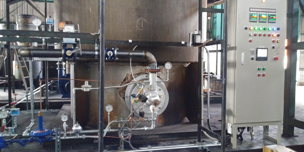 | コンサルタント内容 | ①ロータリーバーナーから、低圧噴霧式に取替え ②ガスパイロットバーナー使用で自動着火可能 ③均圧弁方式にてターンダウン5:1 ④燃焼と温度制御の自動化 |
