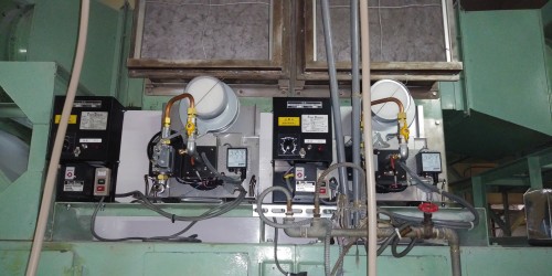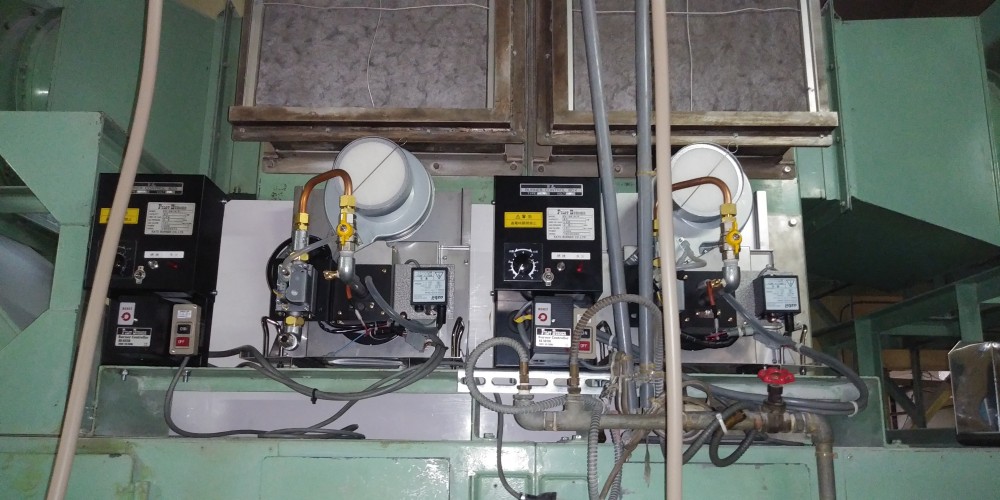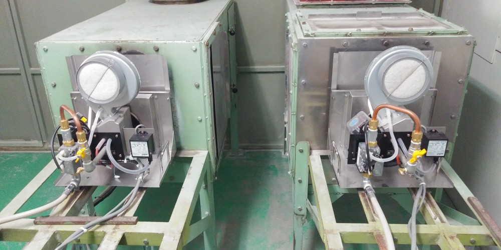 | 特徴 | ①空気比例式のバーナーで小型ながら、取扱が簡単で非常に優秀です。燃焼量がボリュームで可変出来ます ②火炎がブルー炎で臭気もありません。 ③SUSケーシングで設置が全く同じ設計製作致しました。 ④オイルのような故障なく、4年経ちます。 |