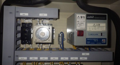 制御盤内にはアズビル製プロテクトリレーR4424が設置しており、オリンピア製のOPR-8に取替え致しました。