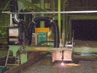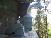 送風機:3相200V、5.5kw、1450rpm、0.8kpa、200m³/min フード型式:囲い式フード 吸い込み口数量:8箇所/160m³/min、1箇所/20m³/min 排気目的:溶接ヒュームの局所排気