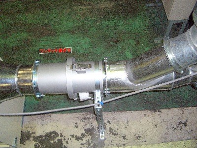 研磨時に発生する少量の火花対策に消炎BOXを設置しました。また、集塵機本体には、自動でエアーを遮断する防火ダンパーを設置し、二重に安全対策を行いました。